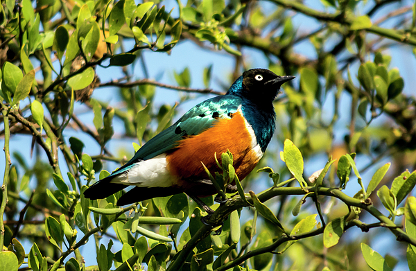 I am not much of a bird watcher, but the Superb Starling is such a beautiful bird that I just had to capture it. In my past two trips to Kenya, I have seen this bird, but never got a really good shot of it. Of course, I have always enjoyed watching them do to their beautiful coat of feathers. The sheen on the back of their wings makes them look like they are made out of sapphires and emeralds.